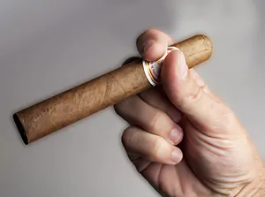 คีบซิการ์ด้วยนิ้วโป้งและนิ้วชี้