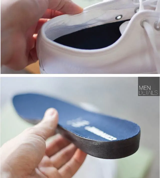 ตัวรองเท้ามีปุผ้านุ่มๆ บริเวณขอบรองเท้าโดยรอบ แถมมีพื้นรองด้านในที่พัฒนาโดยใช้โฟม EVA ลักษณะคล้ายรุ่น Converse x MHL Jack Purcell ซึ่งพื้นรองตัวนี้มีความหนาที่มากกว่าพื้นปกติที่ขายในบ้านเราครับ พูดได้เต็มปากเต็มคำว่า “นุ่มสบายมาก”