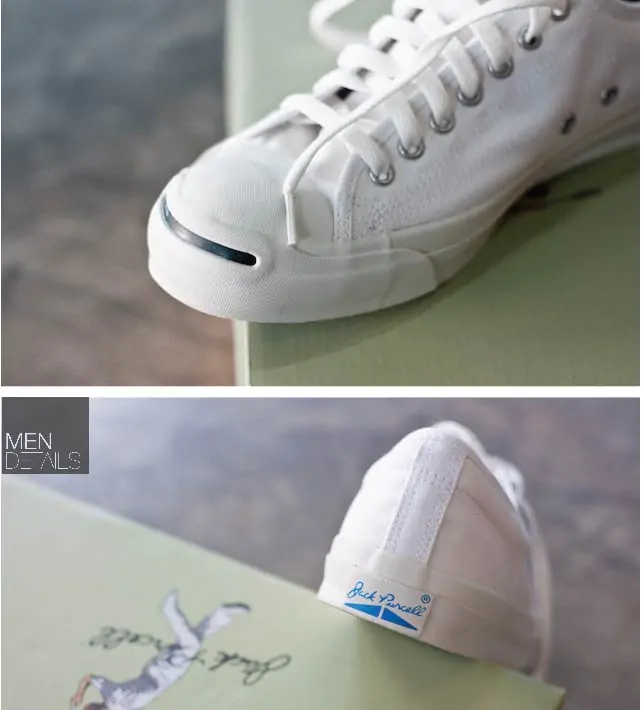 ช่วงลิ้นรองเท้าจะปุด้วยผ้านุ่มเพื่อกันการกัดของรองเท้า และไม่มีลายปักด้านหน้าเหมือนบางรุ่นครับ แต่สิ่งที่รุ่นนี้มีดีคือการรวมเอาลักษณะโบราณของ Jack Purcell รุ่นแรกๆ มาไว้ในคู่นี้เกือบทั้งหมด แถมใส่รายละเอียดเช่นขอบข้างที่นุ่มกันการกัดของรองเท้า พื้นรองเท้าที่เพิ่มแผ่น EVA เพื่อรับแรงกระแทกและเดินสบายมากยิ่งขึ้นจากรุ่นปกติ และที่สำคัญคือ “หนวดของ Jack” ที่เป็นเอกลักษณ์สำคัญของส้นเท้าสมัยก่อนก็มาเต็มครับ ใครสนใจ MDs’ ขอแนะนำ แต่อาจต้องบินไปญี่ปุ่นซื้อนะครับ หรือไม่ก็ Pre-order เอา
