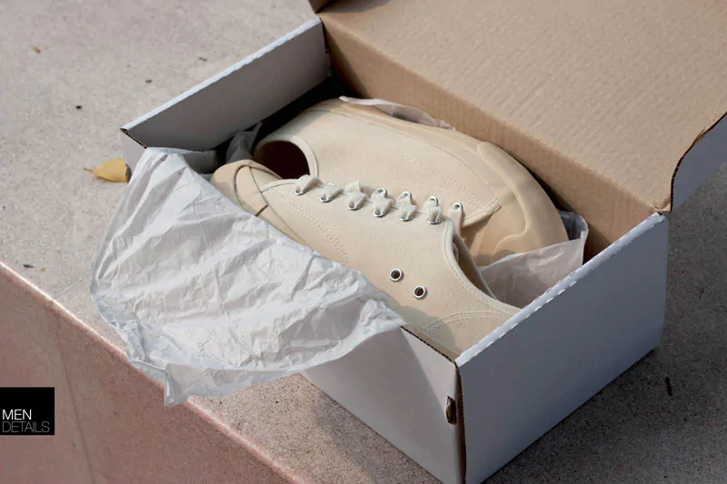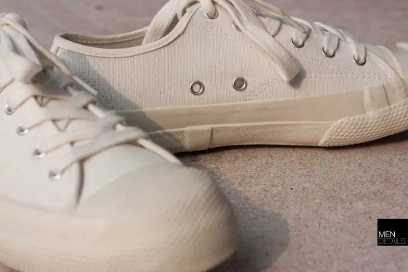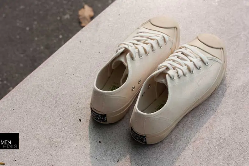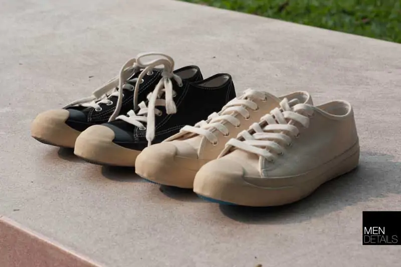 “รุ่นแรกจะผลิตจากผ้า Deadstock คือไม่มีผลิตอีกแล้ว” พี่บู้กล่าวเพิ่ม “แต่พอมาครั้งนี้ก็เลือกใช้ผ้าที่สั่งผลิตจากญี่ปุ่นเอง” ซึ่งผิวสัมผัสถือว่าใช้ได้เลยทีเดียวครับ เทียบเท่ารองเท้าดีๆ แพงๆ ราคา 4-5 พันบาท ได้สบายๆ แถมรุ่นใหม่ตัวนี้มีรายละเอียดตรงไส้ตะเกียงที่เป็นผ้าชนิดพิเศษด้วยเช่นกัน (ลองดูดีๆ ผ้าจะเป็นคนละแบบ) ถือว่าใส่ใจกับรายละเอียดมากๆ เลยครับ