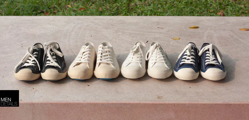 พื้นรองเท้ามีการปรับเปลี่ยนจากสีน้ำเงิน มาเป็นสีขาว Off-White ตามแบบฉบับรองเท้า Vintage โบราณ และที่เปลี่ยนไปอีกส่วนคือส่วนยางหุ้มที่หัวของรองเท้า จะตัดตรงกว่าและมี Texture ไม่เหมือนรุ่นที่แล้ว “คือพี่อยากลดทอนรายละเอียดให้มันเป็นรองเท้าที่ Timeless จริงๆ” พี่บู้เสริม “แถมตัวรองเท้าจะไม่มีวันเหมือนกันซักคู่เดียวนะ ขนาดคู่เดียวกันยังไม่เหมือนกันเลย เพราะทุกคู่ทำมือหมด มันคือสเน่ห์ของรองเท้าที่ทำมือ 100%”